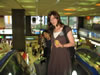 at a book store so she could buyu a bunch of books...while she and her friend