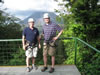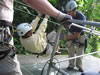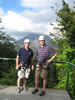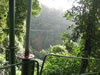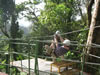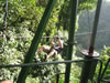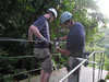 The lady in the yellow shirt had been too afraid to ride down alone on the lines so she had been going down with the first guide. The line in the picture, at one point, goes too close to the ground, however, to support the weight of two people and serious injury can occur if you hit the ground at 50 miles an hour. She said she wasn't going down without anyone. But there was no way back. We convinced her that she should just try sitting in the harness and getting comfortable before she headed down. She did but kept saying, "don't let me go, don't let me go, til I'm ready." Of course, as soon as she sat into the harness, the guide slung her down the hill as fast as he could. She did just fine and gave us all a big hug.
